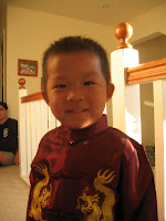 We were trying out some Chinese outfits Scott had bought for the kids - all on the big side but Reagan and Kaitlyn started to hug and kiss ? They were pretending they were mommy and daddy???